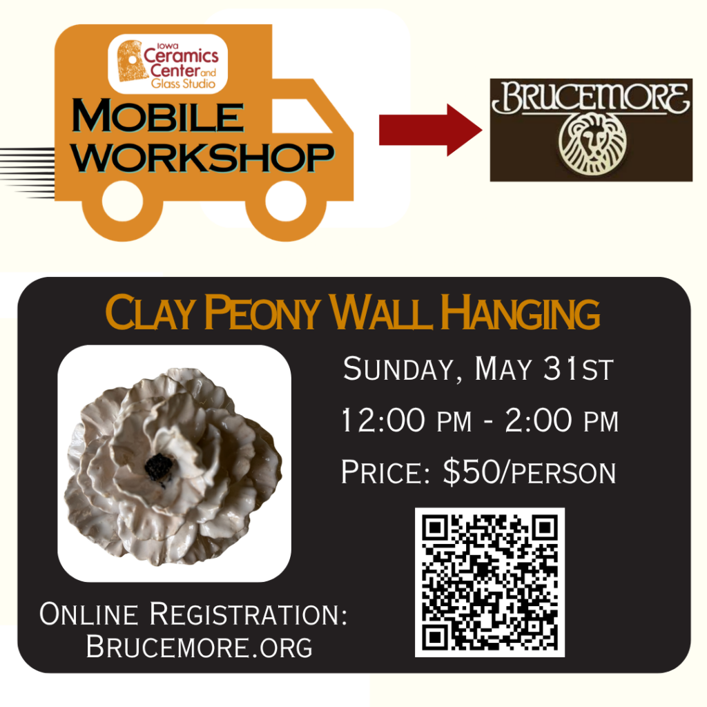 - Finished pieces will be available for pickup at the Iowa Ceramics Center & Glass Studio about three weeks after the workshop.